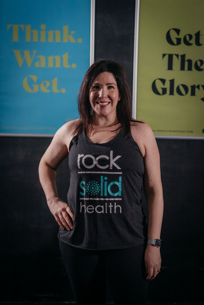 My fitness journey started after I graduated college when I found a love for strength training. I worked out consistently for 3 years with a personal trainer, pushing myself to build strength and lose weight; however, I was on such a restrictive diet and intense workout program, it was ultimately not maintainable. I lost track of my goals and started back into an unhealthy lifestyle, putting me back to square one. At this point I was living in Ohio and decided to move to Chicago. With the change in scenery it was also time to make a lifestyle change. I knew I had to get back in the swing of things and was looking for strength focused class and stumbled upon Rock Solid. It looked like everything I was looking for; small class size, strength-based, and classes 3x a week with additional classes for yoga, boxing, conditioning, etc.